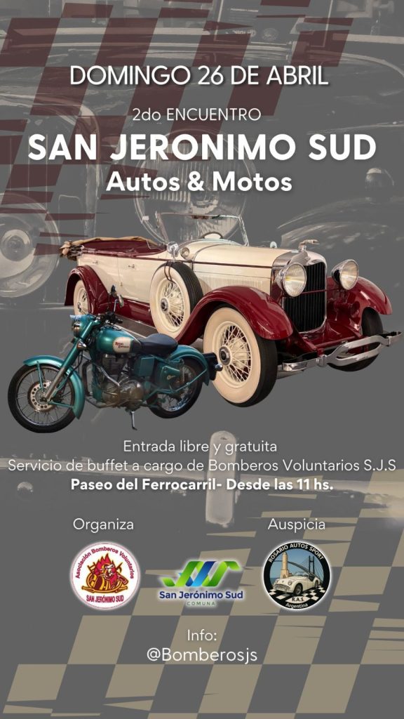 San Jerónimo Sur vivirá este domingo una propuesta especial para toda la región con la realización de la segunda muestra de autos clásicos y motos, junto al primer rally de regularidad, organizado con el acompañamiento de Bomberos Voluntarios, la comuna local y el grupo Rosario Auto Sport.